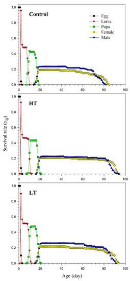 - Chi, H.; You, M.; Atlıhan, R.; Smith, C.L.; Kavousi, A.; Özgökçe, M.S.; Güncan, A.; Tuan, S.-J.; Fu, J.-W.; Xu, Y.-Y.; et al. Age-Stage, two-sex life table: An introduction to theory, data analysis, and application. Entomol. Gen. 2020, 40, 102–123. [Google Scholar] [CrossRef]