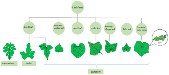 Research on key genes regulating the leaf development of Cucurbitaceae plants is of great importance to reveal the mechanism of leaf development and breeding of Cucurbitaceae plants. There seems to be a close relationship between leaves and the development of reproductive organs in Cucurbitaceae. For example, male and female sterile mango fruit (mf) mutants in cucumber also have abnormal development of cotyledons and true leaves, and cotyledons appear narrower, wrinkled, downward cupped, and darker than the wild-type. The leaf expansion of true leaves was significantly reduced [6]. Leaf shape is controlled by complex interactions between genetic networks. The genetic mechanism of the leaf shape characteristics of Cucurbitaceae plants is not completely clear, but some representative leaf-shaped mutants of Cucurbitaceae were found. The identification of key genes from leaf shape mutants is critically important to decipher the functions of some genes regulating leaf traits.