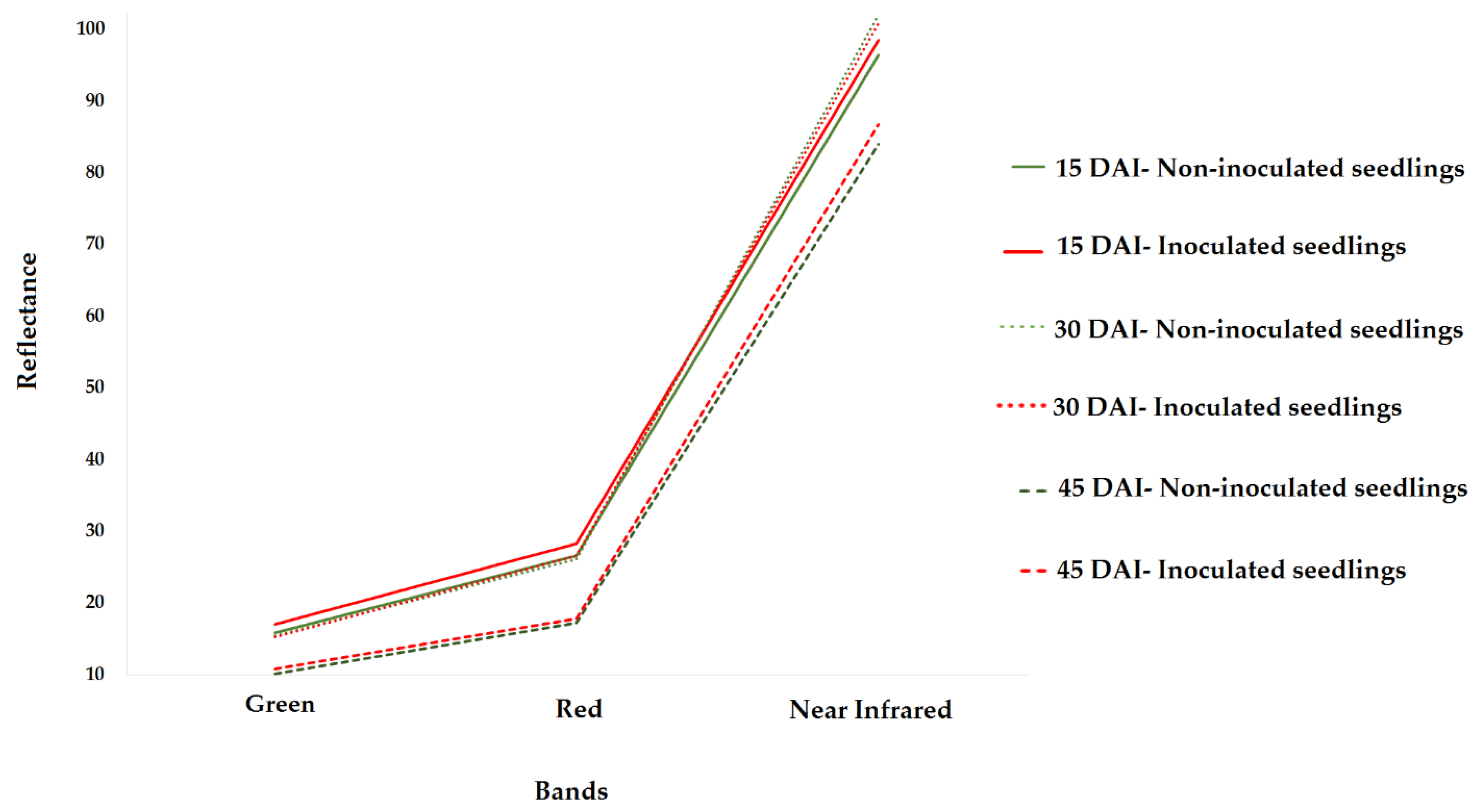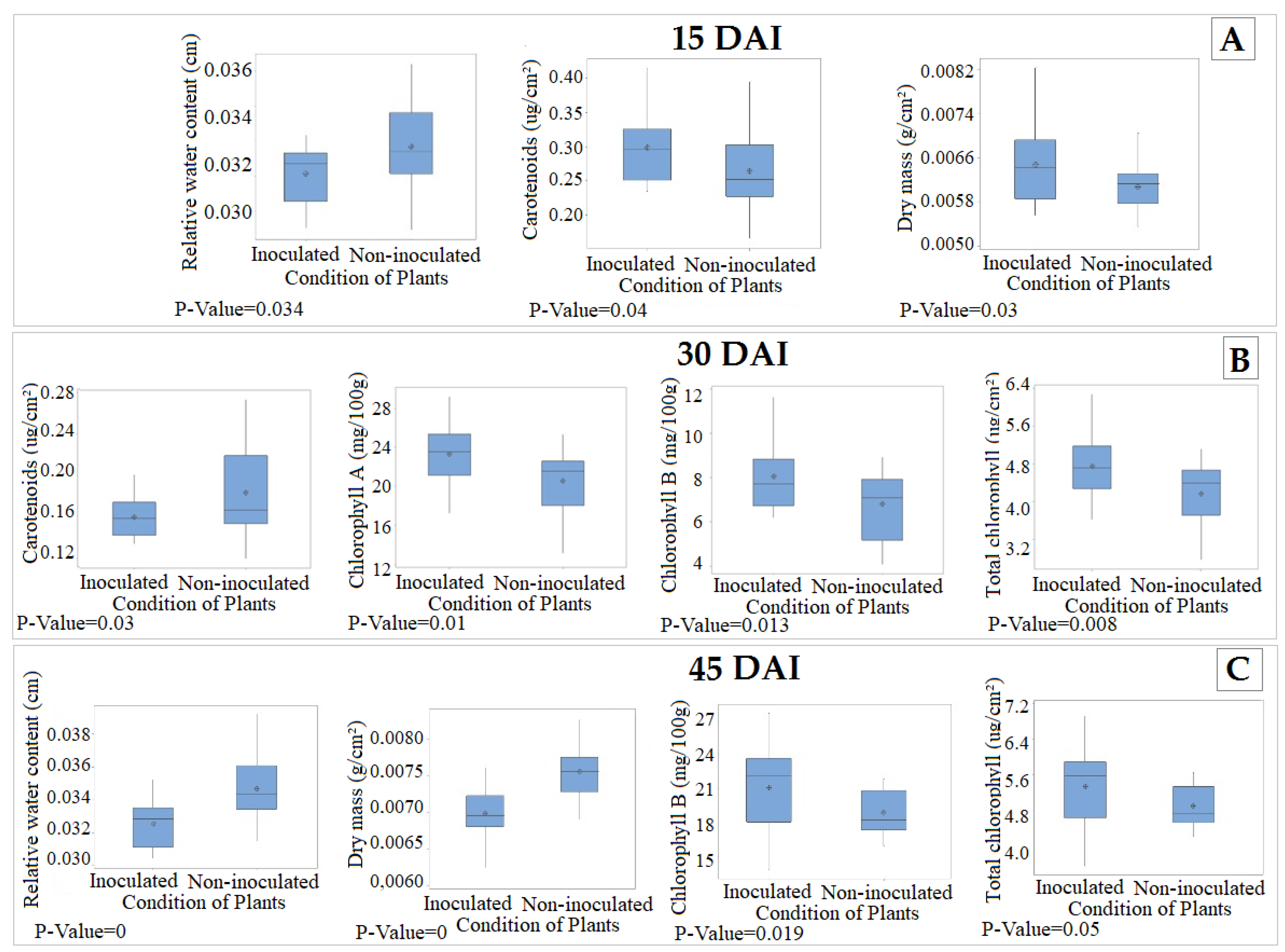 | 30 DAI | RN | non-inoculated | 18 | 2 | 16 | 4 | 17 | 3 | 15 | 5 |