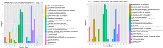 Gene Ontology (GO) annotations, the Kyoto Encyclopedia of Genes and Genomes (KEGG) pathway analysis, Clusters of Orthologous Groups of proteins (COG), Swiss-Prot, the Non-Redundant (NR) Protein Database, KOG, and the Pfam database were employed to investigate the putative biological functions of the target genes and biological processes possibly regulated by miRNAs in soybean.
