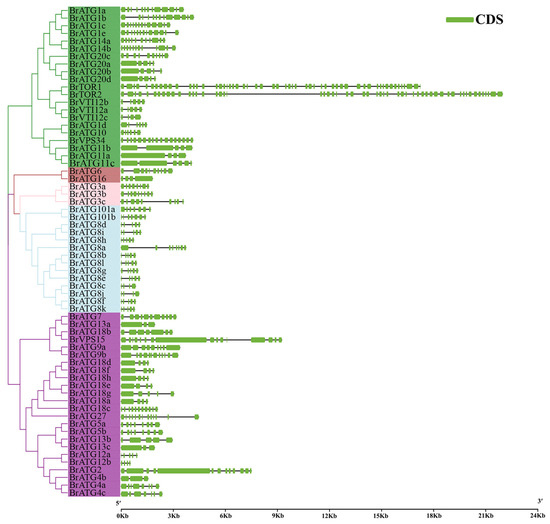 Gene structure analysis of BrATG gene in Chinese cabbage. Green boxes indicate exons, and black lines indicate introns.