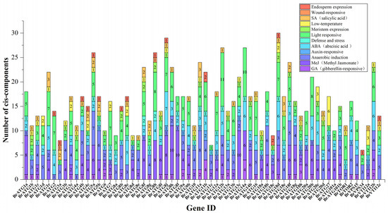 Cis-acting analysis of BrATG genes in Chinese cabbage. Different color blocks represent different components.