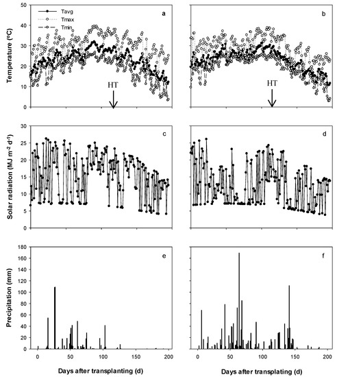 Climate parameters, including the daily minimum/maximum temperatures and solar radiation, were obtained from a weather station located near the experimental site.