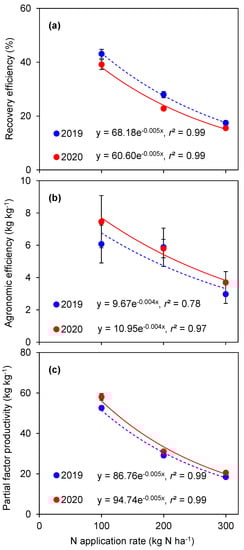 NUEs were presented as recovery efficiency (REN), agronomic efficiency (AEN), and partial factor productivity (PFPN).