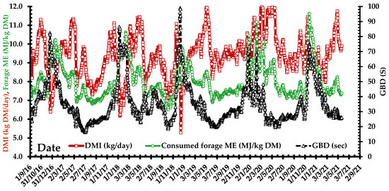 Figure 7), as expressed by the high GBD. According to the HMS, high-quality forage with low biomass (high GBD) significantly decreased the DMI (