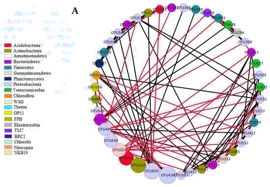 Soil microorganisms maintain soil health and are crucial for crop production in agricultural systems. They play an essential role in the soil structure as well as in decomposing organic matter, degrading contaminants, suppressing soil-borne diseases [9] and fertilizing the soil [10,11]. The complex interaction among different microbial species through the flow of energy, matter and information forms large, complex ecological networks; it is essential to understand the underlying mechanisms in order to fully understand the soil microbiota [12]. Determining microbial network structures and their relationships to environmental changes and metabolic processes in microbial communities is a significant challenge in agricultural soils [13].