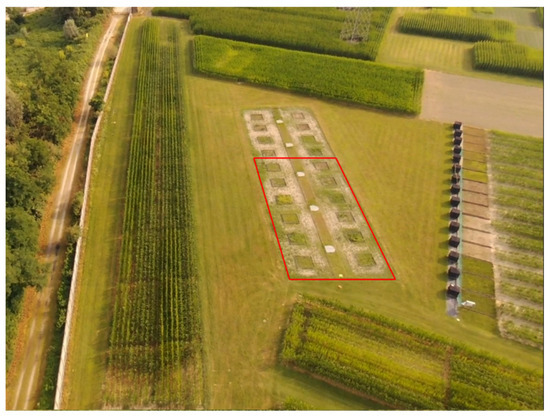 A group of 12 lysimeters built in 1991 was used during the two-year trial. Lysimeters are disposed of two adjacent rows (Figure 1). Each lysimeter has a rectangular shape made of high-density polyethylene with a surface area of 8.4 m2 (2.8 × 3 m) and a depth of 1.8 m. To facilitate water discharge, a series of polyethylene tubes arranged horizontally were laid at the bottom part of the lysimeters. Soil was separated from the tubes by three layers of gravel (30 cm), sand (30 cm), and non-woven polypropylene fiber, respectively. These layers constituted the drain component for each lysimeter. At the time of installation, lysimeters were filled with disturbed soil taken from the surrounding experimental station soil.