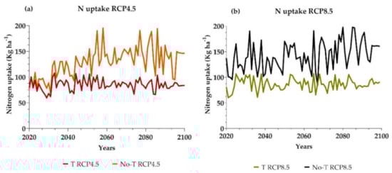 Moreover, the effects of intensive soil T on the N cycling and N losses through leaching, which may lead to a higher N stress index in wheat-cropping systems, have been reported in several studies carried on future climate periods [3,4].