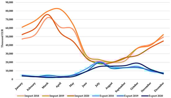 The vegetable Romanian import and export volumes per month. Source: authors’ own design.