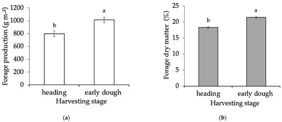 In these environments, both barley and field bean are usually cultivated in autumn–winter, are sown and harvested at the same time, and are grown with comparatively low inputs [24,25]. They represent common forage species, used either for green forage or silage [26], as they concurrently reach the optimal growth stage for ensilage [27,28]. Additionally, the two crops can also be grown for dry grain to increase the nutritive value in feed [21,29].