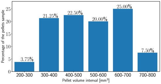 Figure 3. Size (volume) distribution of the pellets used in the experiments.