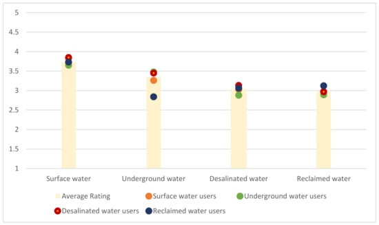 According to the Friedman test (p < 0.001) each water user ranked the alternative water sources significantly different. Nevertheless, differences in water preference by water use type was significant only for underground water sources (p < 0.001) and insignificant for the remaining water sources (p > 0.20). K-Means cluster analysis results are inconsistent and not significant, as any direct relationship may be proved across most variables with acceptable errors to test significance and therefore, to extrapolate results with a reasonable degree of certainty, it was excluded from the research.