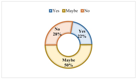 The willingness to use reclaimed water of those farmers surveyed that had never used it because their agricultural holdings are located in areas where this option does not exist was evaluated in order to study general perceptions coming from non-users. With nearly three out of four farmers willing to use it, fully or partially, the results illustrated in Figure 6 are encouraging in terms of farmers’ acceptance. The key group are hesitant farmers who comprise exactly half of the sample. Their importance lies in the fact that they are certainly open to this new water alternative, as long as the reasons that make them doubtful of its use are addressed; therefore, further investigation is needed in order to overcome these factors and tilt this balance in favour of tertiary water.