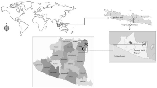 Research location in Gunungkidul Regency, Yogyakarta Province, Java Island, Indonesia (a), Trial location in Semin District (b).