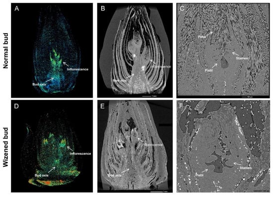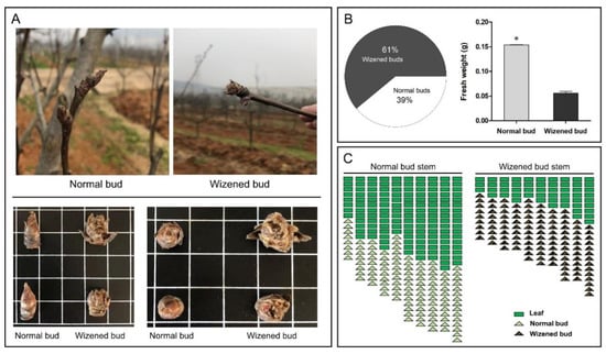 3.1. Phenotype and Structure Comparison between Normal Buds and Wizened Buds