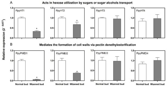 - Liu, Y.; Zhang, H.P.; Gu, C.; Tao, S.T.; Wang, D.S.; Guo, X.P.; Qi, K.J.; Zhang, S.L. Transcriptome profiling reveals differentially expressed genes associated with wizened flower bud formation in Chinese pear (Pyrus bretschneideri Rehd.). J. Hortic. Sci. Biotechnol. 2016, 91, 227–235. [Google Scholar] [CrossRef]