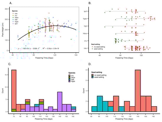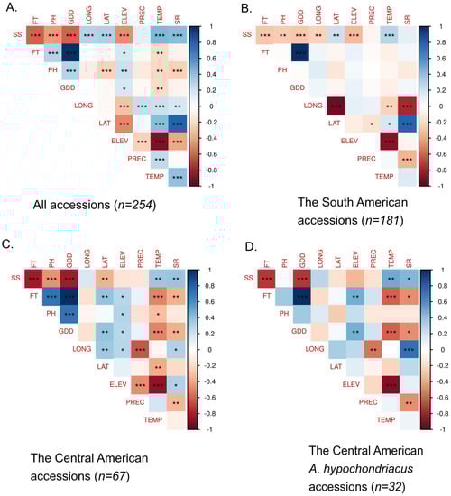 Chicago/Turabian StyleBaturaygil, Ali, and Karl Schmid. 2022. "Characterization of Flowering Time in Genebank Accessions of Grain Amaranths and Their Wild Relatives Reveals Signatures of Domestication and Local Adaptation" Agronomy 12, no. 2: 505. https://doi.org/10.3390/agronomy12020505
