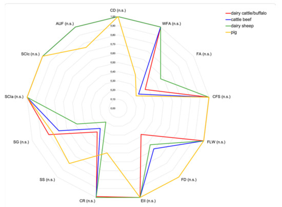 Furthermore, the values of the indicators have been compared with those included in the sustainability score for stockless farms developed by Migliorini [54] in order to better identify how the set of indicators can highlight the contribution of livestock farming systems to agrobiodiversity and ecosystem services.