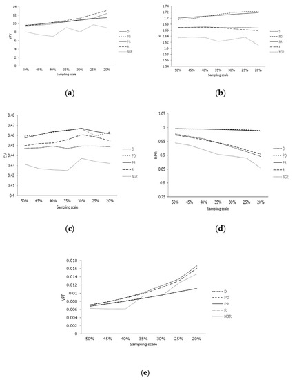 3.1. The Tendency of Parameters for Sampling Methods in Different Sampling Scales