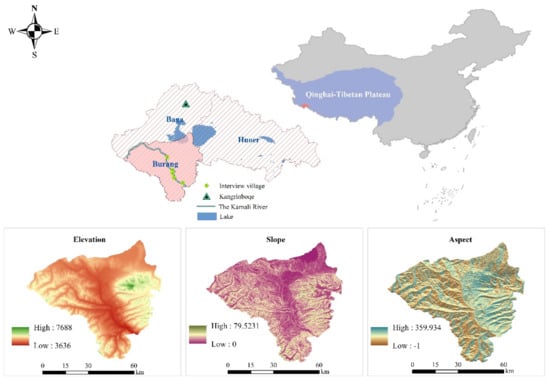 The Karnali River Valley, a Tibetan settlement, is located in Burang County, Tibet, China. It is geographically located at the junction of the central and western Himalayas and is one of the 23 vertical fault valleys in the Himalayas [26]. The average elevation of both banks of the river valley is approximately 3900 m, which typical of a high-altitude area and the natural vegetation is an alpine desert meadow [18]. This region has a long history and culture. It has the world-renowned mountain, Kangrinboqe, which is the sacred to Yongzhong Bonism, Hinduism, Jainism, and Tibetan Buddhism. It is also one of the core areas of the ancient Xiangxiong Kingdom. Moreover, these region has been an important channel for exchange and trade between Tibet and the South Asian subcontinent since ancient times [26]. Burang Tibetans speak the Ü-Tsang dialect, but their dialect has strong specific characteristics [27].