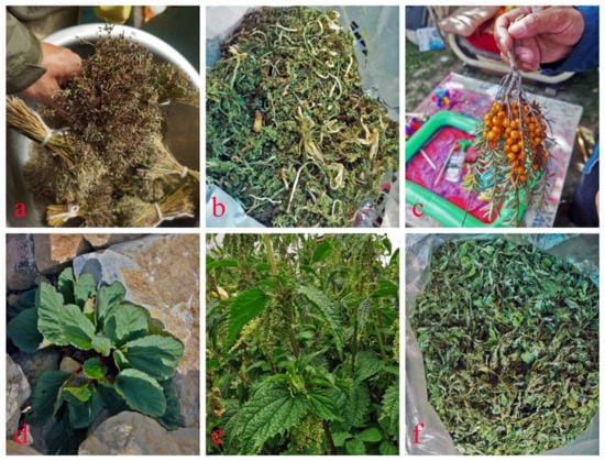 - Abbas, Z.; Khan, S.M.; Abbasi, A.M.; Pieroni, A.; Ullah, Z.; Iqbal, M.; Ahmad, Z. Ethnobotany of the Balti community, Tormik valley, Karakorum range, Baltistan, Pakistan. J. Ethnobiol. Ethnomed. 2016, 12, 38. [Google Scholar] [CrossRef] [PubMed] [Green Version]