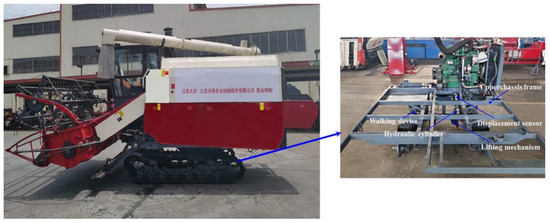 A combine harvester is a product with one of the most complex structures of all agricultural vehicles [1]. The walking chassis is the core component of a combine harvester, which is installed with all the working devices to complete the functions of cutting, conveying, threshing, cleaning, grain gathering, smashing and spraying, but also needs to adapt to various operating environments, such as paddy or dry fields and slopes [2,3,4]. However, vehicles are usually unable to maintain a level position when operated over uneven terrain, which frequently requires the driver to adjust the operating parameters to improve the harvester performance [5,6,7].