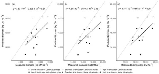 - Loges, R.; Bunne, I.; Reinsch, T.; Malisch, C.; Kluß, C.; Herrmann, A.; Taube, F. Forage production in rotational systems generates similar yields compared to maize monocultures but improves soil carbon stocks. Eur. J. Agron. 2018, 97, 11–19. [Google Scholar] [CrossRef]