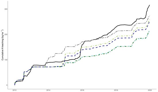 - Vogeler, I.; Lucci, G.; Shephard, M. Effects of fertiliser nitrogen management on nitrate leaching risk from grazed dairy pasture An assessment of the effects of fertilizer nitrogen management on nitrate leaching risk from grazed dairy pasture. J. Agric. Sci. 2016, 154, 407–424. [Google Scholar] [CrossRef]