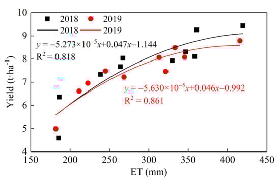 3.6. Relationship between Grain Yield and ET