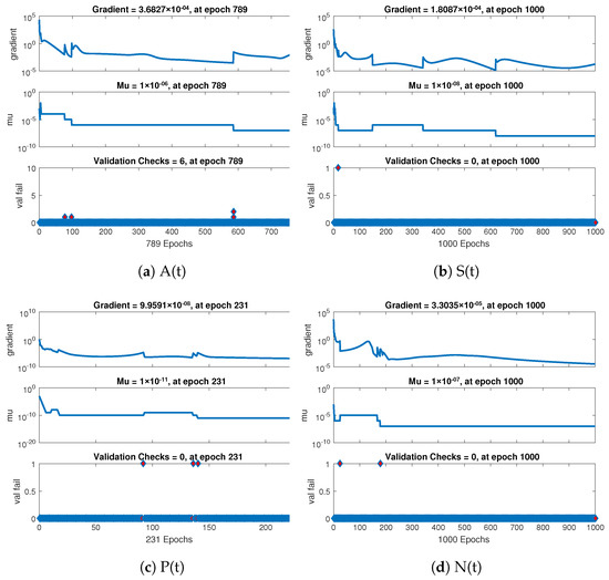 Performance based on validations failure, mu, and gradient of NNs-LMT for case 2.