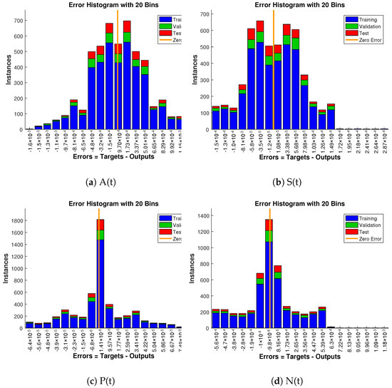 Error histogram analysis in relation to the target data and the approximate solutions for case 1.