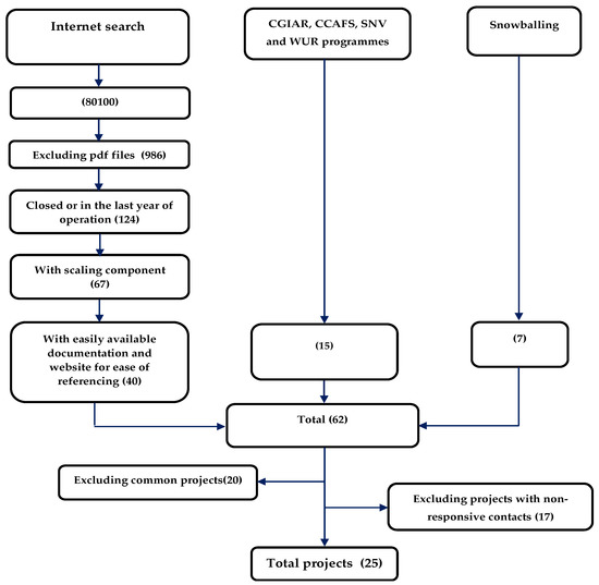 Secondly, we used CRAFT consortium partners who are very active in the scaling landscape, including Wageningen University and Research, CGIAR’s CCFAS programme, and SNV. Thirdly, a snowballing method was used to identify more projects [68]. We further checked for common projects identified through the three methods. Finally, projects whose contacts were non-responsive to our request for interviews were excluded.