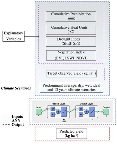 - Alvarez, R. Predicting average regional yield and production of wheat in the Argentine Pampas by an artificial neural network approach. Eur. J. Agron. 2009, 30, 70–77. [Google Scholar] [CrossRef]