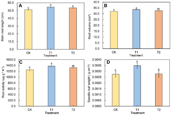 2.4. Dry Matter Accumulation, Specific Leaf Weight, and Root Parameters