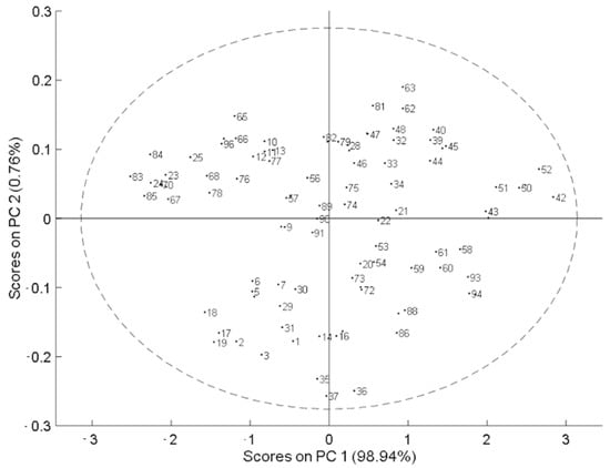Data analysis was performed using the specific software The Unscrambler® X v.10.4 (Camo Software AS, Oslo, Norway). First, principal component analysis (PCA) was performed with the full set of samples. PCA was applied to explore the spectral variability of the population [], which also allows elimination of outliers that can have a negative effect on modeling [].