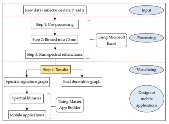 Therefore, the spectral signature graph could be stored in the spectral signature library through a multipurpose database, i.e., mobile applications, that users can interface with, as well as providing convenient access to researchers [14]. After that, the spectral signature could be displayed as a spectral reflectance graph for each pest and disease. A spectral library for pest and disease species in the crop field using mobile applications is an excellent start to store all spectral signatures for current use and the future.