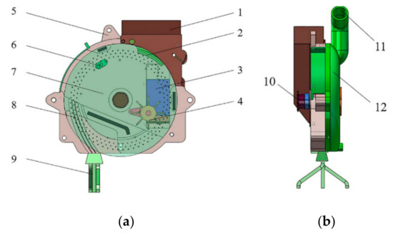 - Shi, L.R.; Wu, J.M.; Sun, W.; Zhang, F.W.; Sun, B.G.; Liu, Q.W.; Zhao, W.Y. Simulation test for metering process of horizontal disc precision metering device based on discrete element method. Trans. Chin. Soc. Agric. Eng. 2014, 30, 40–48. [Google Scholar] [CrossRef]