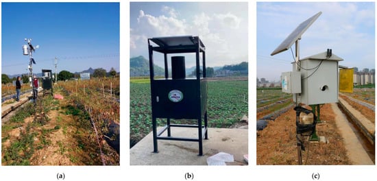 Hot pepper disease and pest monitoring equipment in Guizhou. (a) weather station; (b) pathogen monitoring equipment; and (c) pest monitoring equipment.
