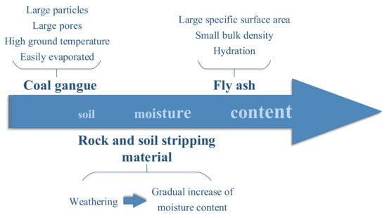 Mechanism of the effect of coal gangue, fly ash and rock and soil stripping material on soil moisture content.