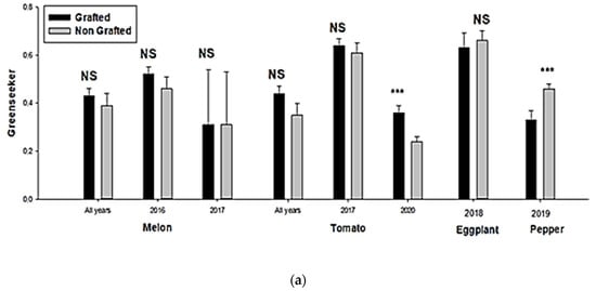 Comparison of Proximal Remote Sensing Devices of Vegetable Crops to Determine the Role of Grafting in Plant Resistance to Meloidogyne incognita