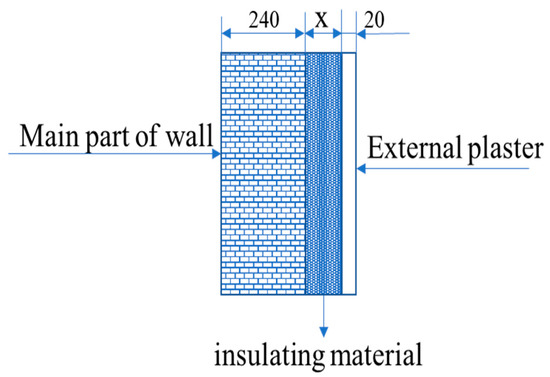 where Ri and Ro (m2K/W) are the thermal resistance of heat transfer coefficients of the inside and outside environment, respectively, Rw (m2K/W) is the thermal resistance of wall without insulation materials, where Rins is the thermal resistance of insulating material, which can also be expressed as x/kins, where x (m) is the thickness of insulating material, kins (W/mK) is the thermal conductivity of the insulating material.