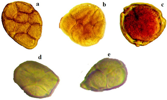 - Ullah, F.; Ahmad, M.; Zafar, M.; Parveen, B.; Ashfaq, S.; Bahadur, S.; Safdar, Q.; Bin Safdar, L.; Alam, F.; Luqman, M. Pollen morphology and its taxonomic potential in some selected taxa of Caesalpiniaceae observed under light microscopy and scanning electron microscopy. Microsc. Res. Tech. 2021, 85, 1410–1420. [Google Scholar] [CrossRef]