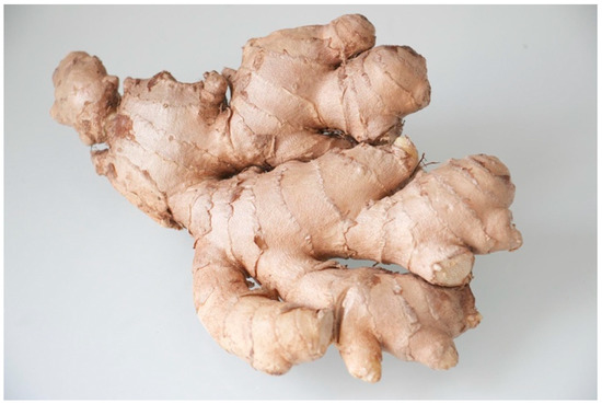 Zingiber officinale Roscoe is a perennial herb belonging to the Zingiberaceae family and native to Southeast Asia and the Pacific Islands (Figure 1). Rhizomes are very popular in Asian folk medicine, and their traditional uses are widespread all over the world, mainly as flavoring agents for foods and beverages and as herbal remedies. Several authors have summarized the chemical composition of these plants [23,24], and some modern research articles have revealed new findings concerning their potential to ameliorate memory dysfunctions [25], metabolic syndromes [26], obesity management [27], and vascular diseases [28].