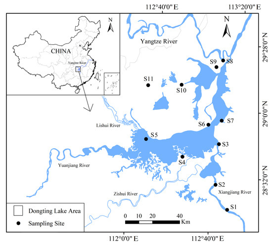 Figure 1. Location of the 11 in situ sampling sites within the Dongting Lake area.