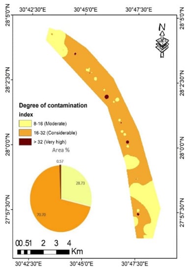 Map of degree of contamination in the study area.