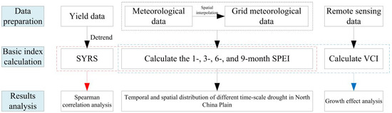 The methodological framework in this paper was shown in Figure 2. We first preprocessed meteorological data, yield data and remote sensing data, then calculated the basic indicators, and finally analyzed the results.