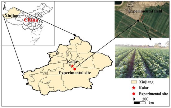 Due to the high yield and good quality of its produced cotton, southern Xinjiang has become the largest production base for cotton in China []. However, the shortage of irrigation water resources [], secondary salinization of cultivated land [] and low utilization rate of irrigation water and fertilizer [] have seriously restricted the sustainable development of cotton planting. Thus, it is necessary to study the proper mulched drip irrigation mode for cotton cultivation in southern Xinjiang, China.