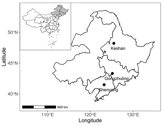 The study area lies in the Northeast China Plain (NEC) and the field experiment was conducted at the three experimental stations (Figure 1). The soil parameters (0–40 cm) of the three stations are shown in Table 1. The mean temperature of frost-free stage in the region is 17.4 ± 1.7 °C (Figure A1), and the mean precipitation is 411.1 ± 150.1 mm (Figure A3).