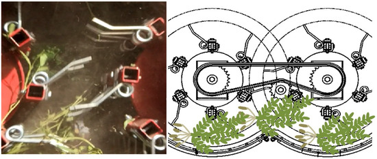 - Lü, X.L.; Hu, Z.C.; Peng, B.L. Analysis and Research on the Picking Roller of the Half-Feed Peanut Combine Harvester. Appl. Mech. Mater. 2014, 597, 502–506. [Google Scholar] [CrossRef]