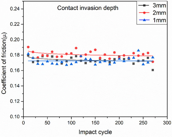 Change in the coefficient of friction depending on the different contact invasion depth conditions.